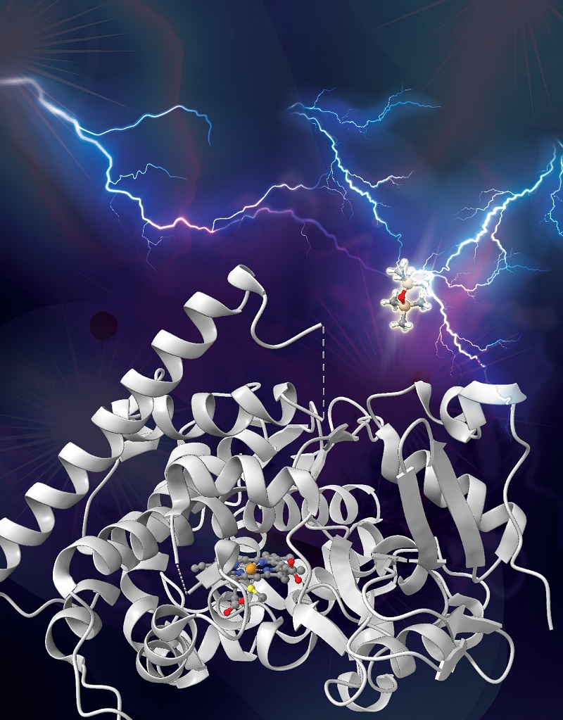 人工進化酶打破硅碳鍵(藝術圖)。 圖片來源:加州理工學院